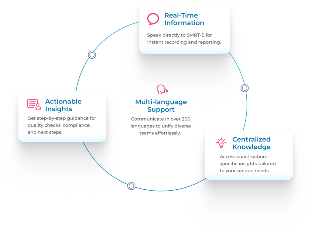 Field teams are often overwhelmed with paperwork, safety compliance, and cross-language communication challenges. SMRT-E simplifies their day with: