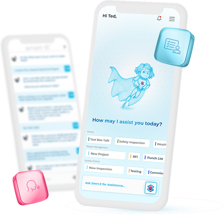 SMRT-E isn’t just another tool. It’s your personal construction concierge/coordinator. Design to streamline every aspect of your project, from planning to execution, SMRT-E leverages cutting-edge AI technology and industry expertise to simplify complex processes, enhance team collaboration, and keep your projects on track.
